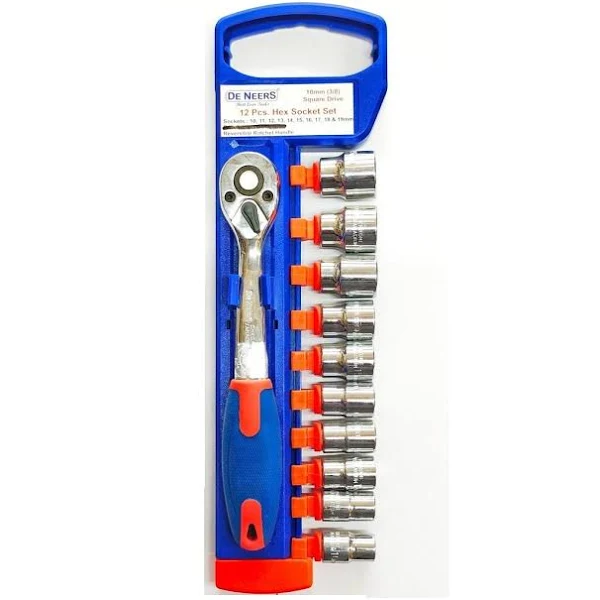 De Neers Socket Set is a professional-grade, chrome vanadium steel socket set with a mirror finish.